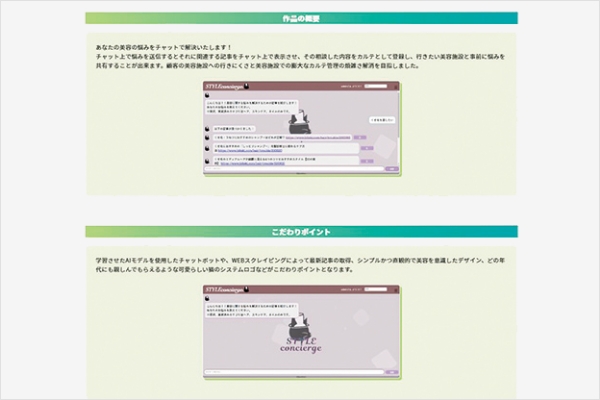本コースで学ぶプログラミング言語「Python」を活用し、「美容の悩み」を相談できるチャットボット制作等を行いました。