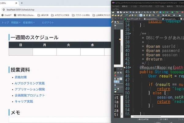 1年次に学んだJavaの応用で、WEBアプリケーションを制作します。