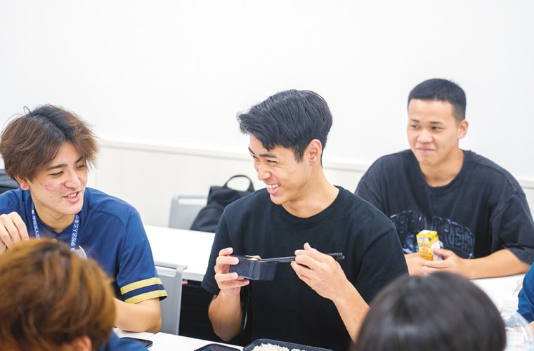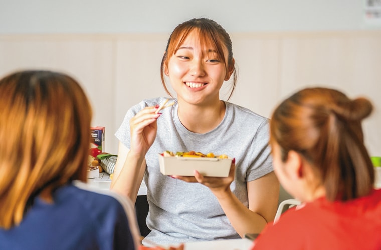 クラスメイトとランチ。お弁当はできるだけ前夜に自炊して作るようにしています。栄養学の授業で習った栄養バランスも考えています。