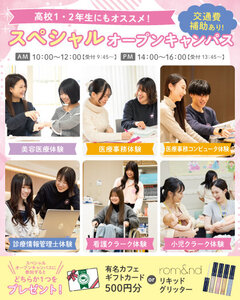 - 【次回は11月9日(日)・11月22日(土)!!】オープンキャンパスへ行こう!☆全学年・再進学の方へ☆初めてお友達と参加の高校3年生の方はコスメプレゼント♡