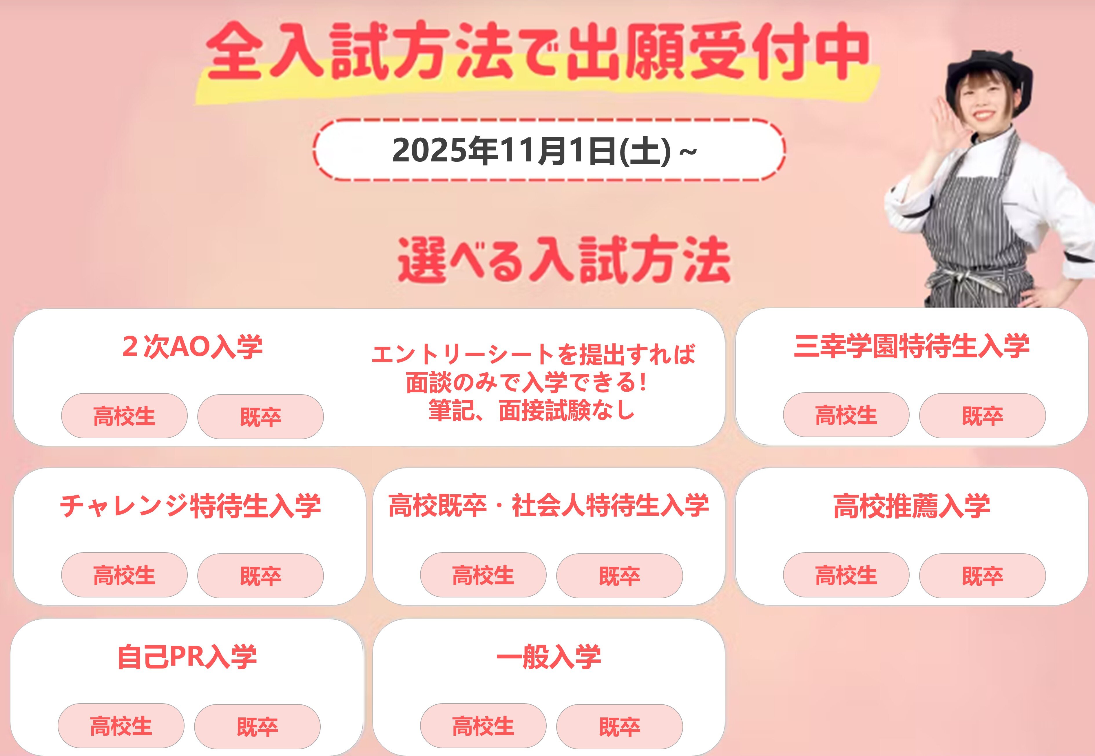 【2026年4月入学】11/1~ 2次AOエントリー受付中!全入試方法で願書受付中!
