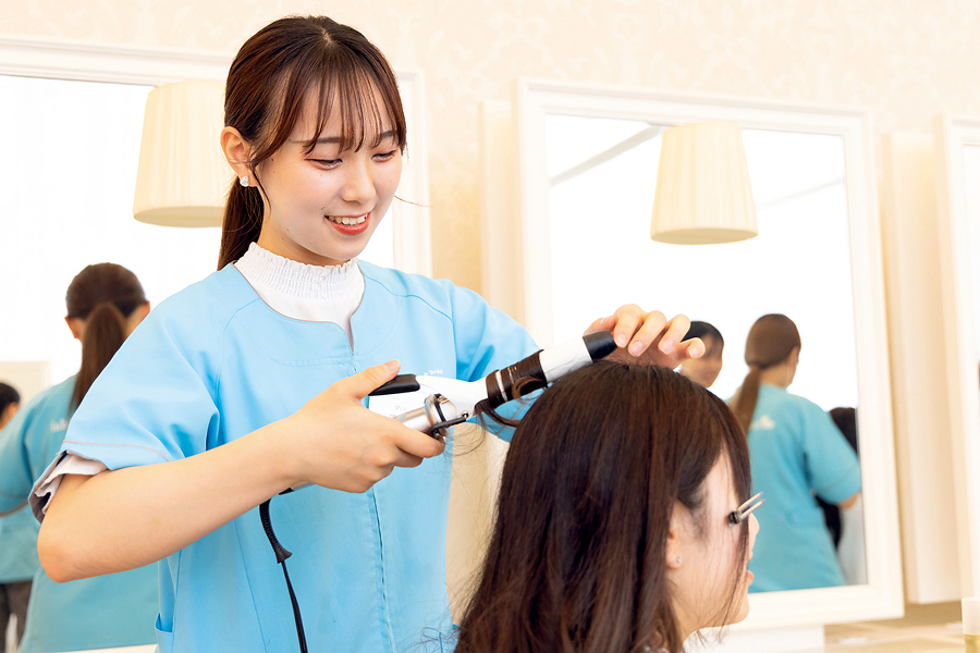 花嫁に「希望イメージ」をヒアリングし、「ドレスに似合う髪型」を提案・実践するスキルを身に付けます。
