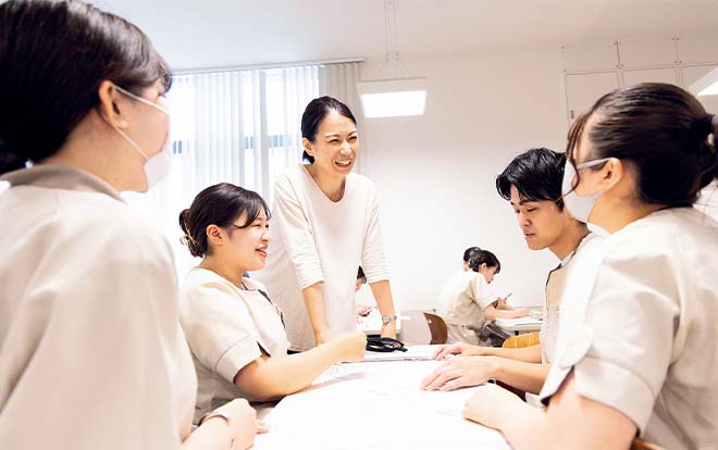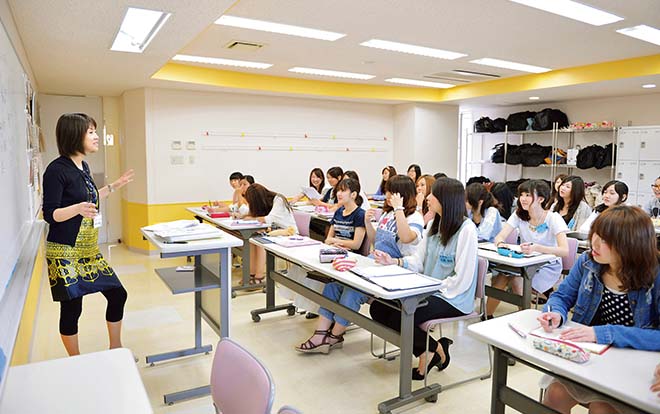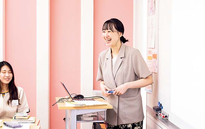 国家資格が2つ取れる唯一のコース。「オリジナルプランニング」では新郎新婦様が当日まで行う準備を自ら体験。「レストランサービス技能検定」では生徒自ら問題を作り、専門用語を覚えていきます。
