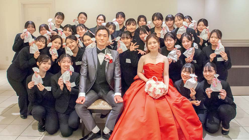 - 新郎新婦様のご希望のヒアリングから始まり、プランニング、挙式などを生徒みんなでつくりあげる