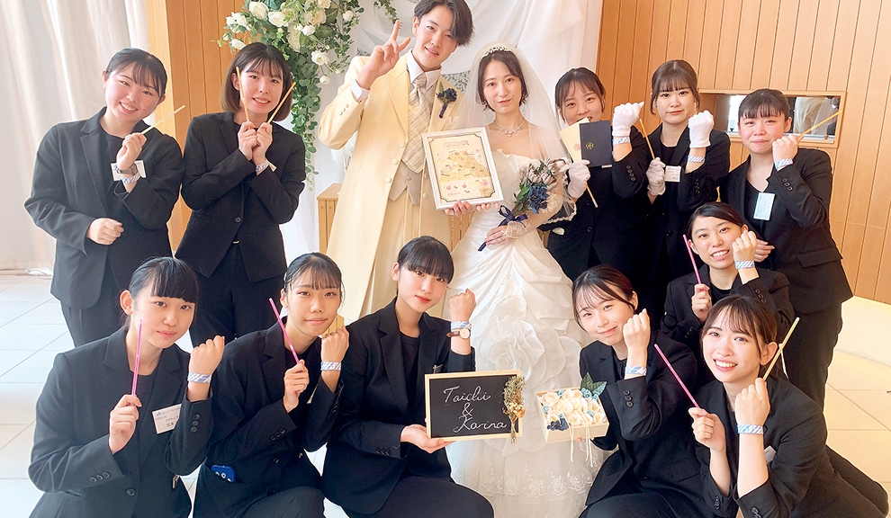 結婚式場さながらの施設で、実践的な授業が日常的に受けられます。模擬挙式や模擬披露宴では、照明や音響、装飾などを自由にアレンジが可能です!