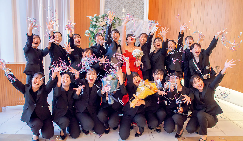 ブライダル業界の仕事で得られる感動とやりがいは幅広い知識とお客様からの信頼の上に成り立ちます。そのために、在学中の2年間で高い専門性と、同じ目標を共に目指すクラスメイトと切磋琢磨することで人間力を身に付ける必要があります。ブライダル業界を志す方々にとって、日々成長する場の提供が私達の仕事だと考えております。