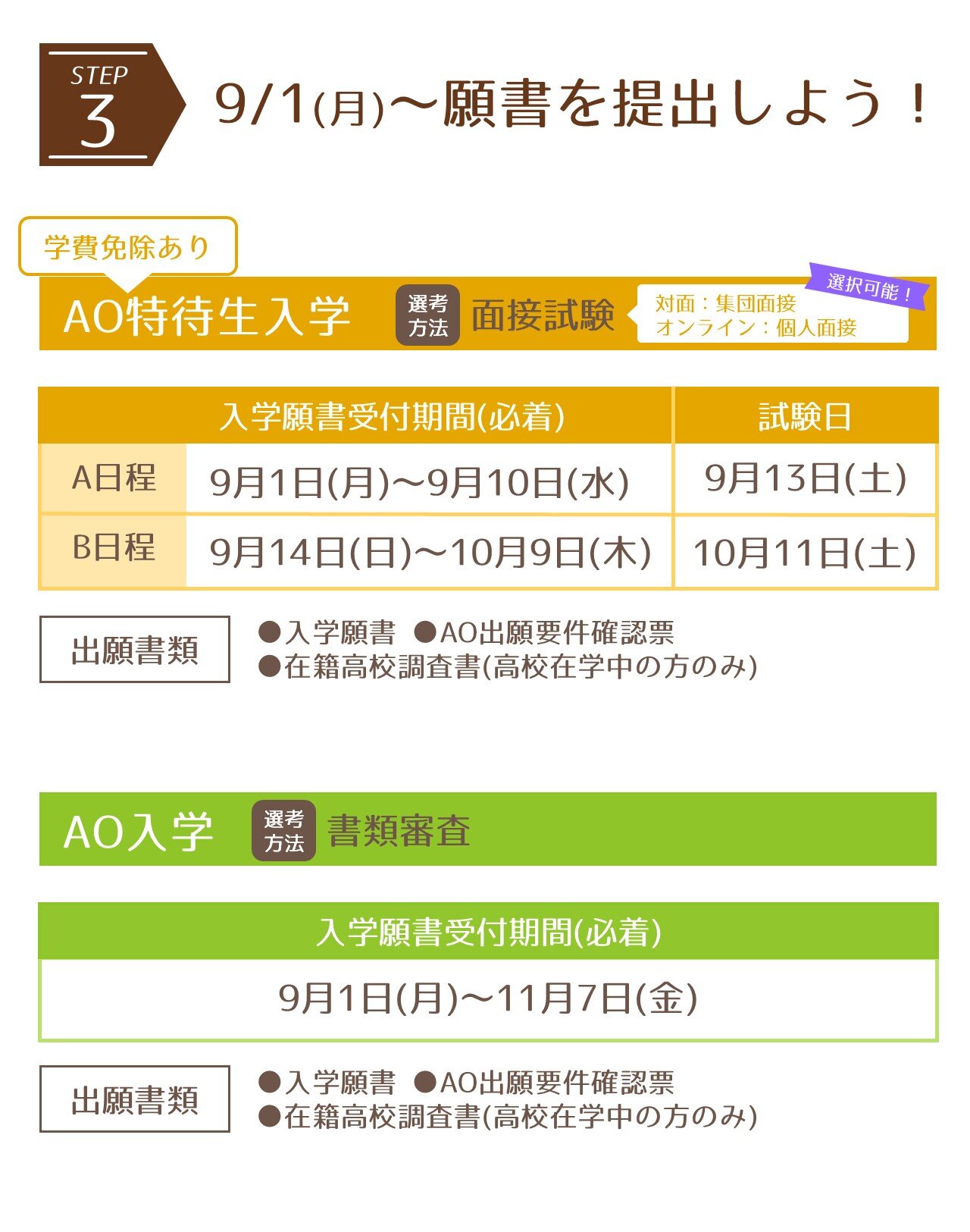 9/1(月)よりAO入学・AO特待生入学の願書受付がスタートします!