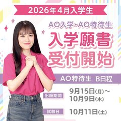 【2026年4月入学希望者向け】9月1日よりAO入学・AO特待生入学開始!2025:09:01:09:01:49