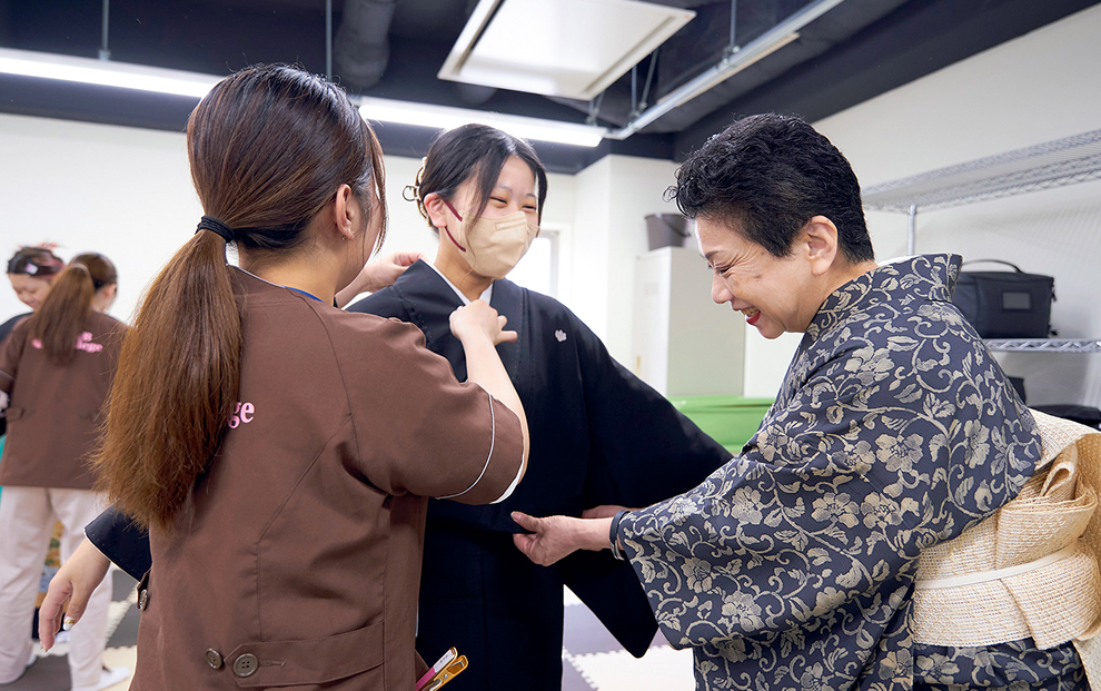 着物の基礎知識から花嫁着付けまで実習を基本に習得。2年間で全4回の検定があり、自信を持って現場で活躍できる技術を身につけます。