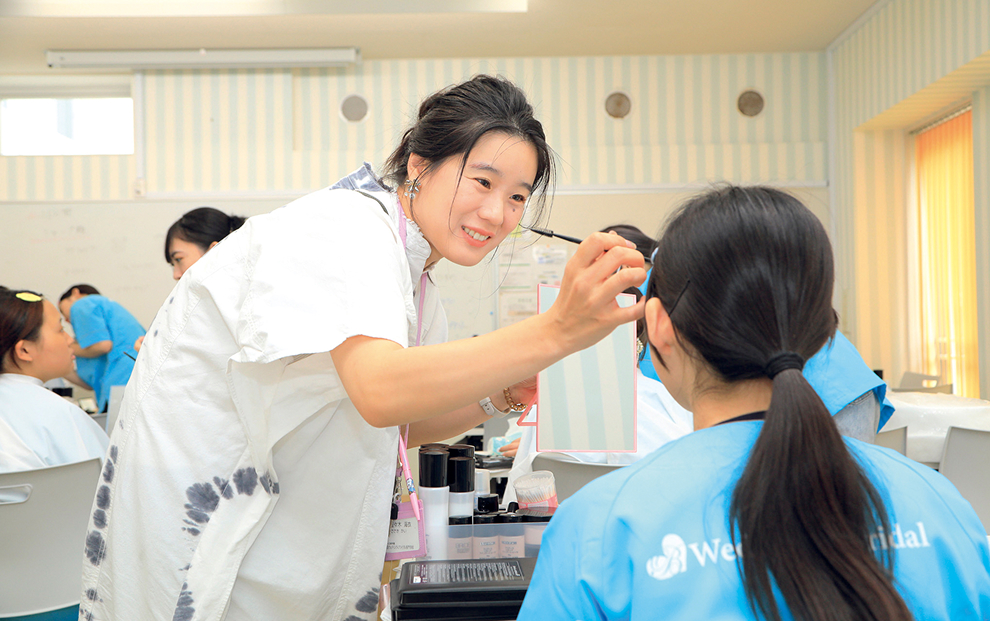 ブライダルシーンに合ったヘアメイクを、基礎から応用まで学習。流行などを意識しながらテクニックを磨きます。