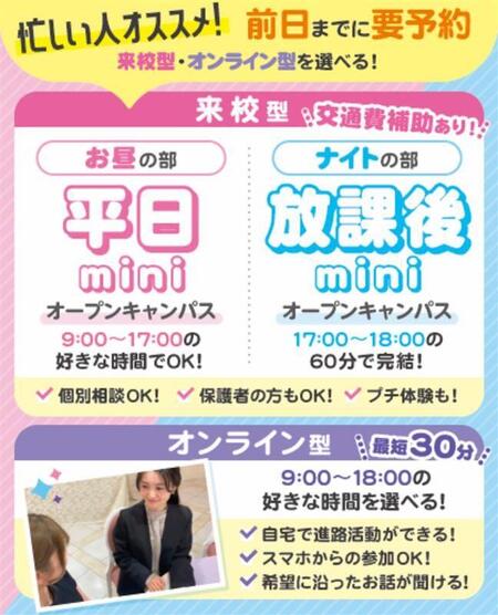お昼の部=平日mini/9:00~17:00(オンラインあり)