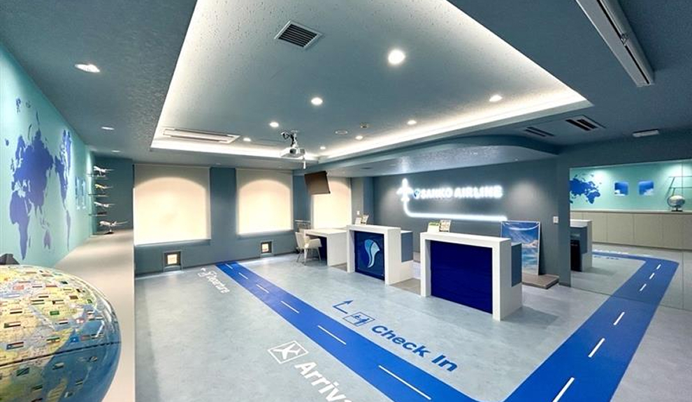 ルームメイクの手順が学べるホテルの客室をイメージした実習室や、フロントでの対応を学べるホテルフロント、空港での手荷物業務や搭乗手続き・アナウンスを学べる空港カウンターがあります。