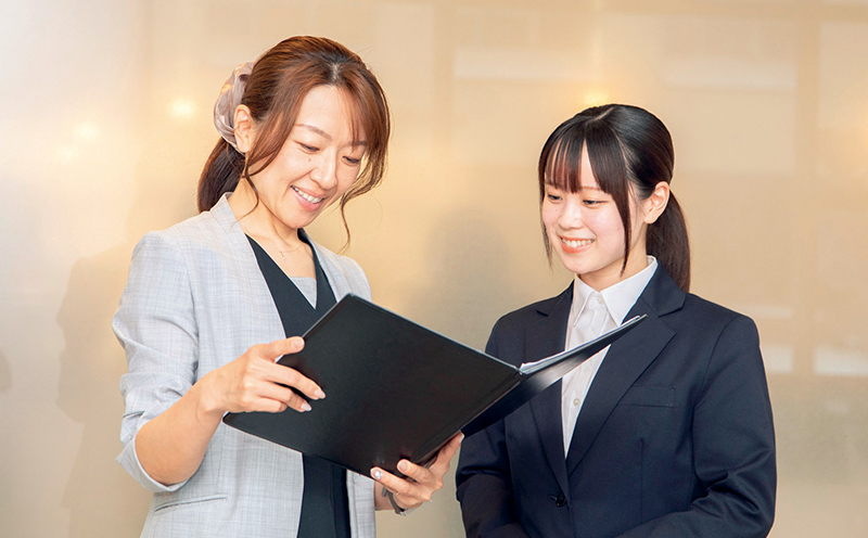 学生一人ひとりの個性や実力をしっかりと把握しているクラス担任と、就職したいエリアの情報に詳しいエリア担当教員の2人で、就職活動をガッチリとサポート。よりリアルで的確なアドバイスを行います。