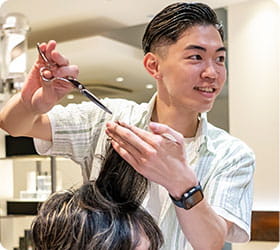 毎日学校に通い、たくさん練習をして基本技術を身につけました。美容師という仕事は、朝は早く夜は遅い大変な職業ですが、毎日できることが増えて、自分の手でお客様を笑顔にすることができる素敵な仕事だと実感しています。いつか自分の美容室を開き、日本一のサロンにすることを目標にしています。