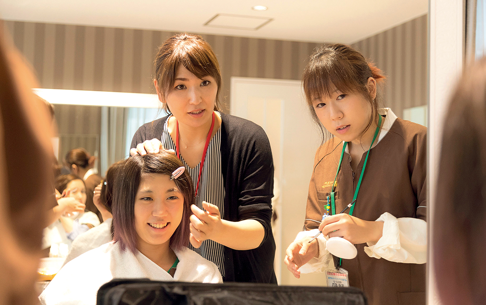 衣裳に合わせたメイクが提案できるよう幅広いメイク術を学び、資格を取得します。
