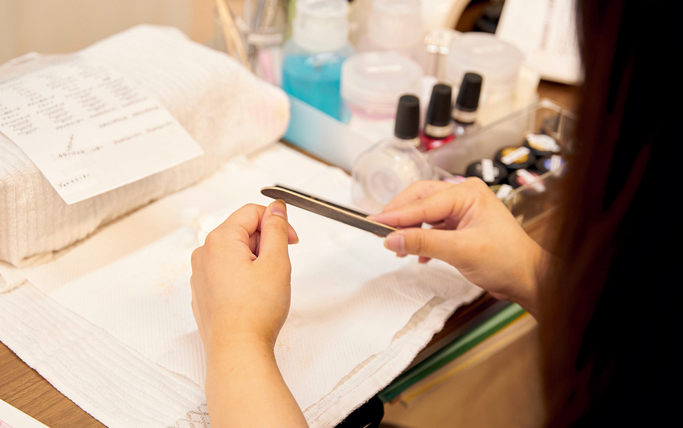 華やかなウェディングドレスに似合うネイルや、流行のネイルのテクニックを実習で学びます。