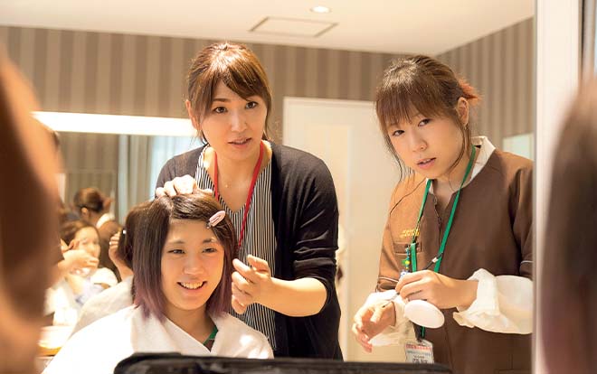 衣裳に合わせたメイクが提案できるよう幅広いメイク術を学び、資格を取得します。