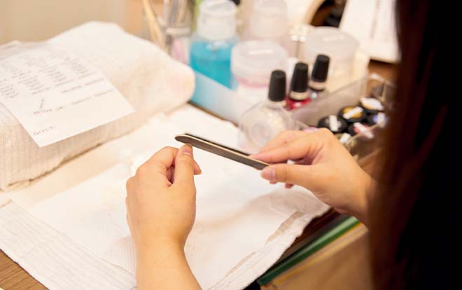 華やかなウェディングドレスに似合うネイルや、流行のネイルのテクニックを実習で学びます。