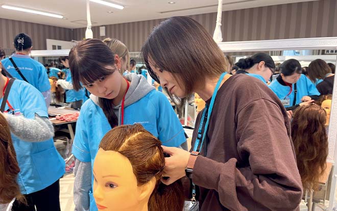 ブライダルシーンに合ったヘアアレンジを基礎から応用まで学習。流行も意識しながらテクニックを磨きます。