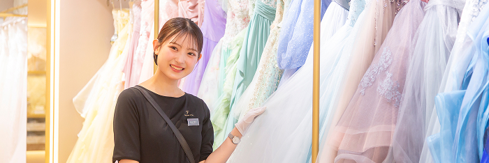 ドレススタイリストは接客だけでなく試着室の片付けやドレスのメンテナンス、商品のリース作業といった細かい仕事も大切だと知りました。ドレスのフィッティングや扱い方を授業で学んでいたので、現場で自主的に動くことができ、就職内定に繋がりました。