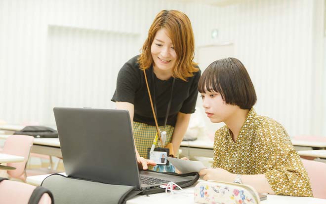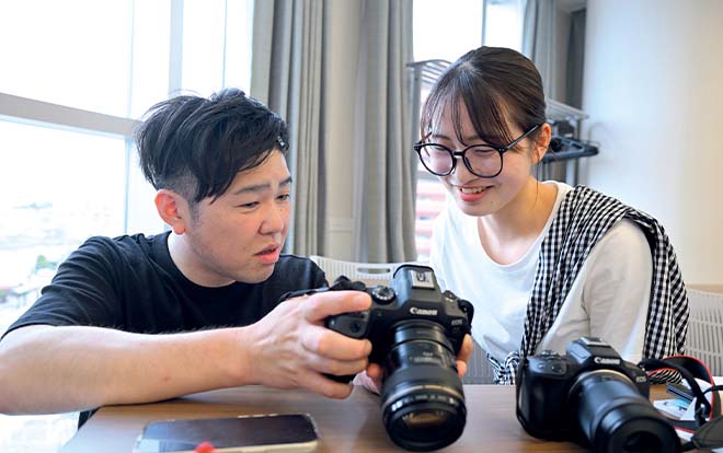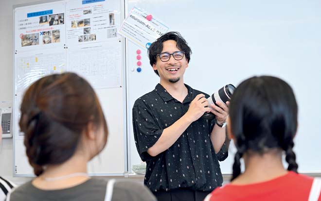 「ブライダル撮影演習」では、スタジオはもちろんロケーションを活かした外の撮影も体験!「写真・動画編集」では、撮影・編集をして映像表現を学びます。実践を通して技術を磨きながら成長を実感できるコースです。