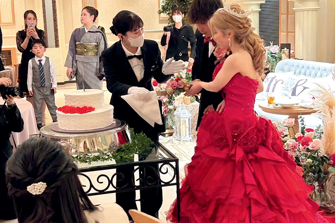 お子様が産まれた冬に思い出に残る結婚式をしたいというお二人の想いから、赤をテーマカラーにクリスマスらしい雰囲気づくりにこだわりました。大好きな新郎新婦様との時間に最高の思い出となりました!