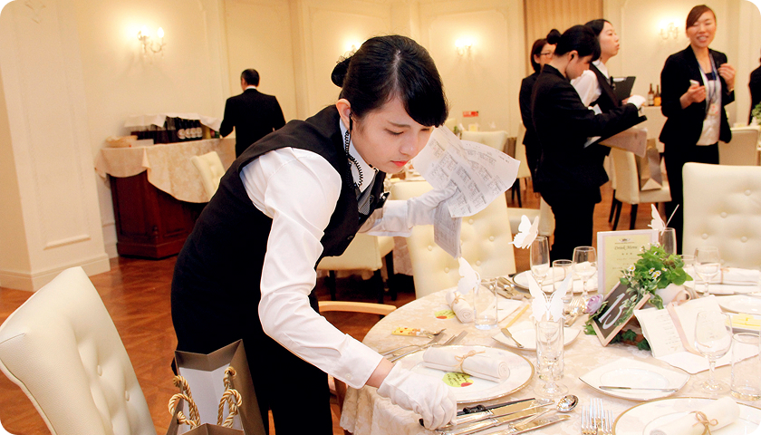 「ビジネスマナー」ブライダル業界で求められる、マナーの習得を目指します。