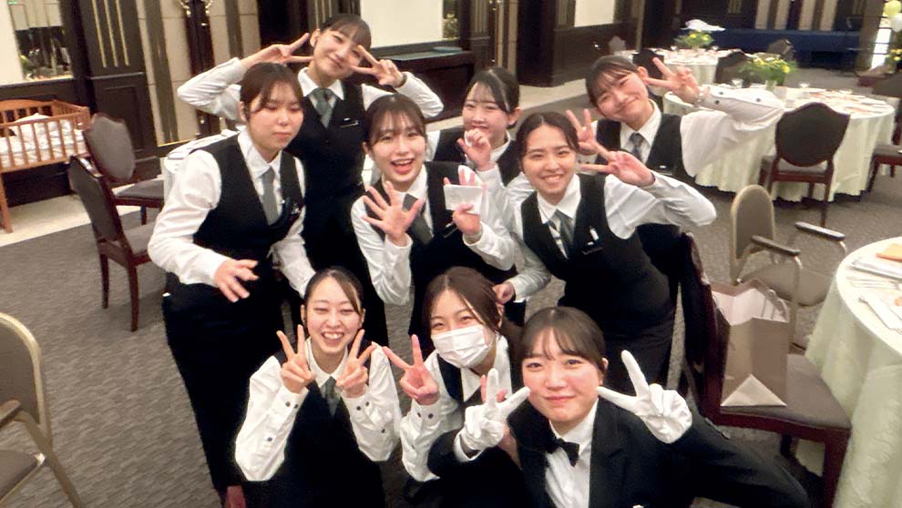 - 新郎新婦様のご希望のヒアリングから始まり、プランニング、挙式などを生徒みんなでつくりあげる