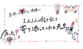 ブライダルヘアメイクとして6年、フォトスタジオ勤務3年。娘と2匹の飼い猫のTikTokを撮るのが趣味。「本校の生徒は楽しくはしゃいでいる休み時間と、意識高く学ぶ授業中のメリハリのギャップが可愛いです。」
