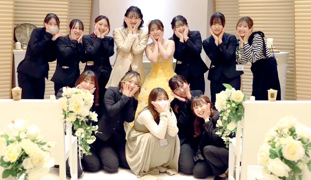 ブライダル業界の仕事で得られる感動とやりがいは幅広い知識とお客様からの信頼の上に成り立ちます。そのために、在学中の2年間で高い専門性と、同じ目標を共に目指すクラスメイトと切磋琢磨することで人間力を身に付ける必要があります。ブライダル業界を志す方々にとって、日々成長する場の提供が私達の仕事だと考えております。