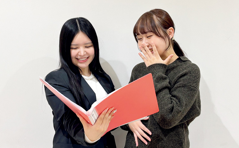 学生一人ひとりの個性や実力をしっかりと把握しているクラス担任と、就職したいエリアの情報に詳しいエリア別就職担当教員の2人で、就職活動をガッチリとサポート。よりリアルで的確なアドバイスを行います。