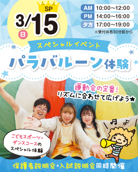 【全学年対象♪】☆3/15(日)はスペシャルday!パラバルーンSP✨≪運動会での定番演目≫音楽に合わせて体を動かし、様々な表現技法を楽しもう!!!