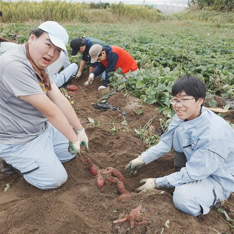 今回の実習ではサツマイモの収穫を行いました。学校よりも広大な畑で採れる巨大なサツマイモに驚き!と楽しさを感じながら作業に取り組むことができました★