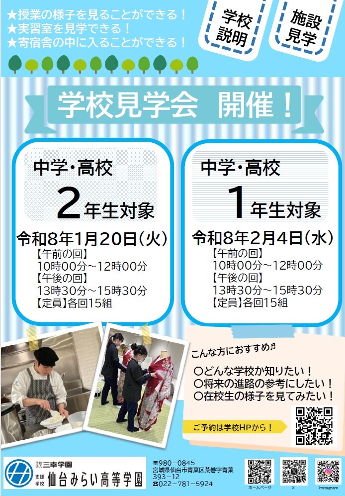 ※本校ホームページからお申込みください。中学1・2年生、高校1・2年生向け学校見学会