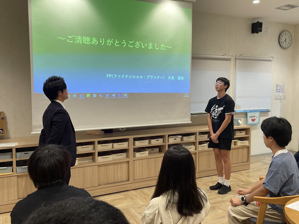 まずは、外部講師としてファイナンシャルプランナーの大友俊則さんをお招きし、「お金を管理することの大切さ」や「お金の使い方」について学びました。