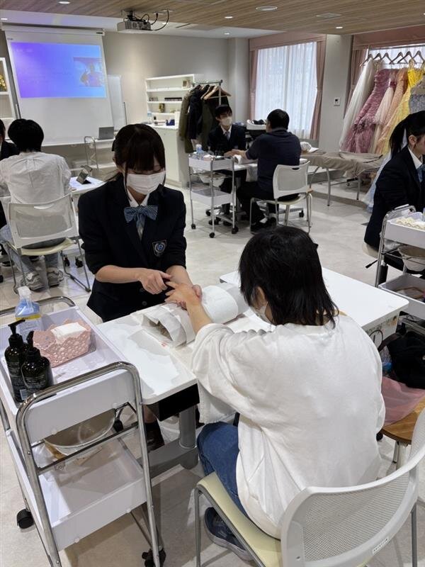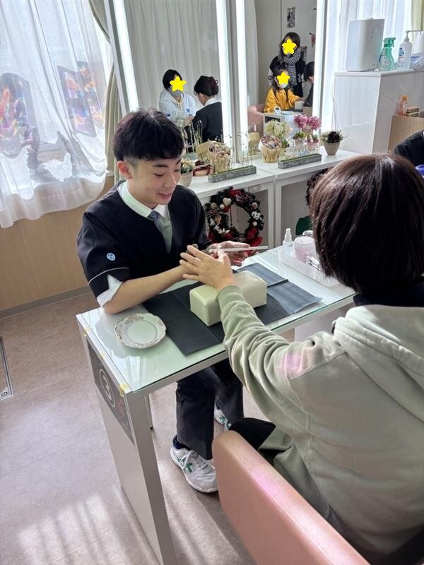 総合受付、スイーツやお弁当等の物販、イートインスペースでの案内、ネイルケア・ハンドマッサージの施術、プラバン・カレンダー作成ブース、福祉ブース、校内清掃など、生徒一人ひとりが役割を持ち、日頃専門コースで学んだ知識や技術を存分に発揮しました。