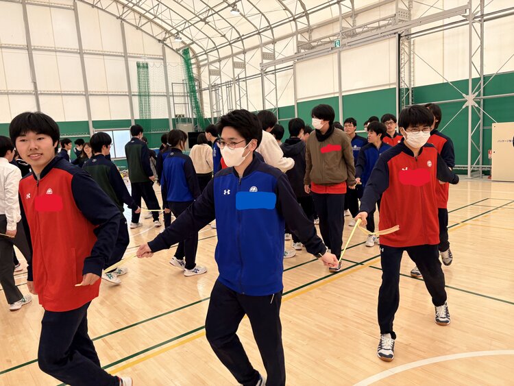 今回は学年の枠を越えてチームを作り、他学年の生徒同士で協力しながら取り組みました。円になってボールを落とさないようにパスをつなぎ、声をかけ合いながら挑戦しました!