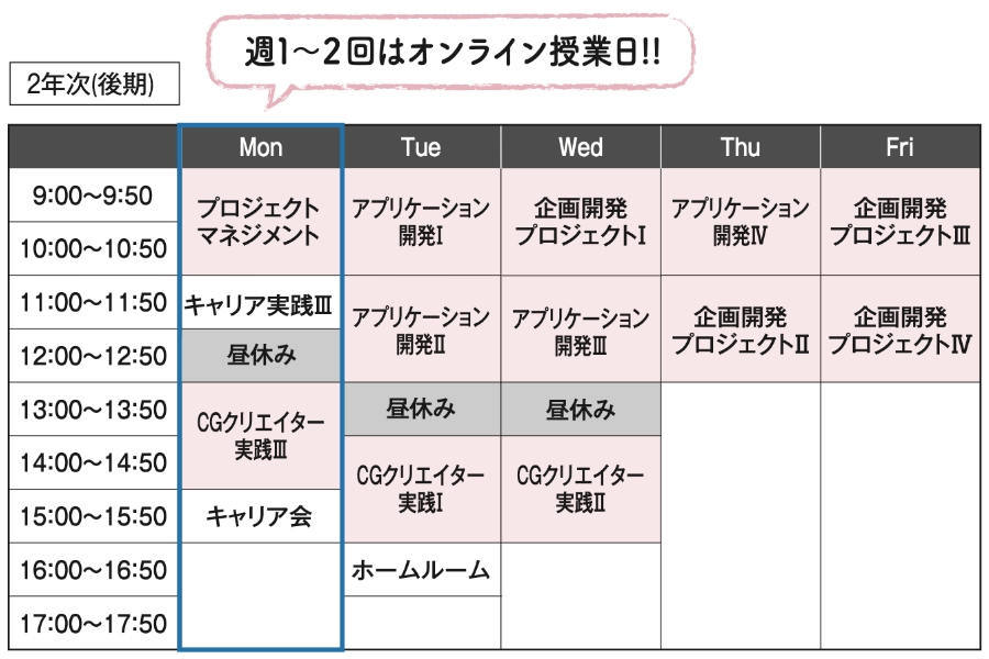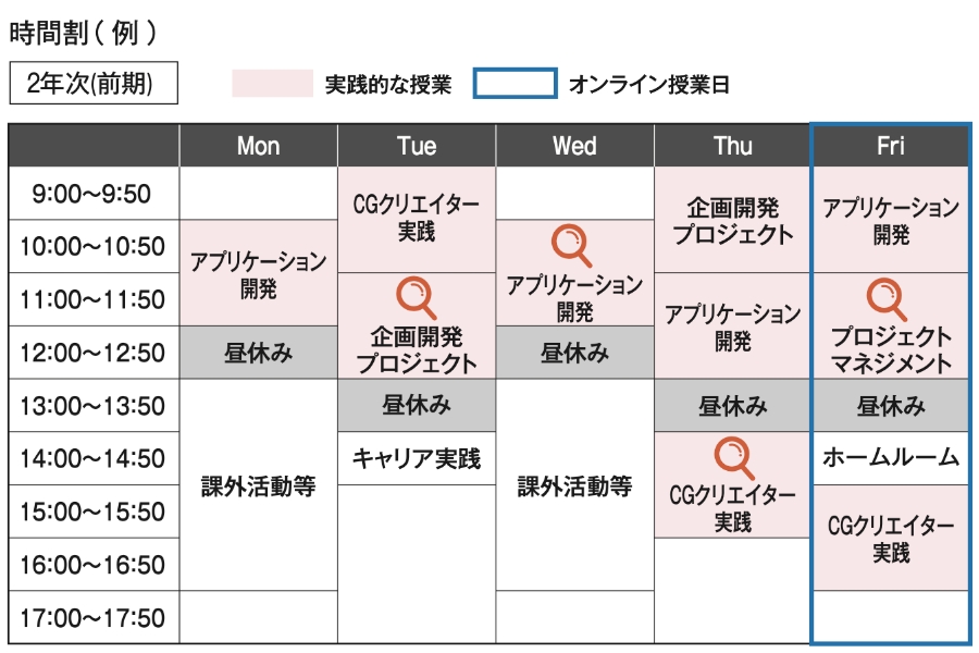 ※時間割は一例です。カリキュラムは変更される場合がございます。