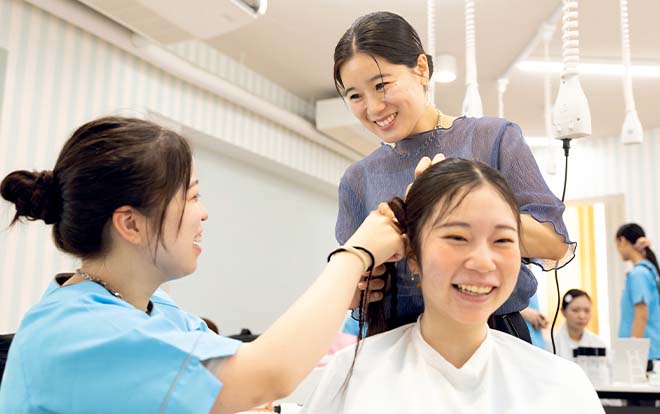 ドレスや和装に映えるヘアアレンジ、ブライダルメイク検定も目指す勉強など、基礎から応用までしっかり習得。トレンドも取り入れながら、花嫁の美しさを最大限に引き出すテクニックを磨けます。