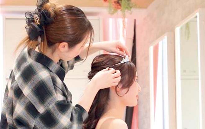 ブライダルならではの、華やかでドレスに映えるヘアアレンジを学びます。ヘアチェンジや和装のヘアセットも習得。