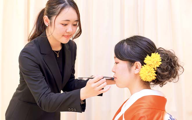 様々なシーンを予想しながら和装・洋装メイクの提案ができるような力を身に着けます。