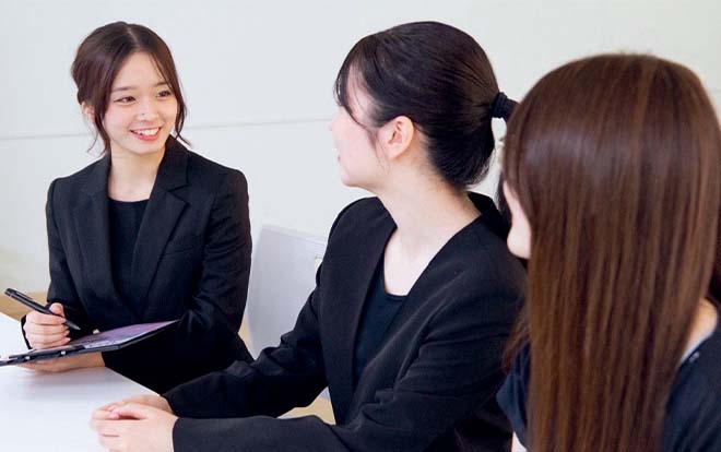 ホテルに関する知識を詳しく学べるほか、1年次よりもさらに踏み込んだサービスを勉強。「オリジナルプランニング」の授業では、お客様との打ち合わせの流れをロールプレイングで学習します。