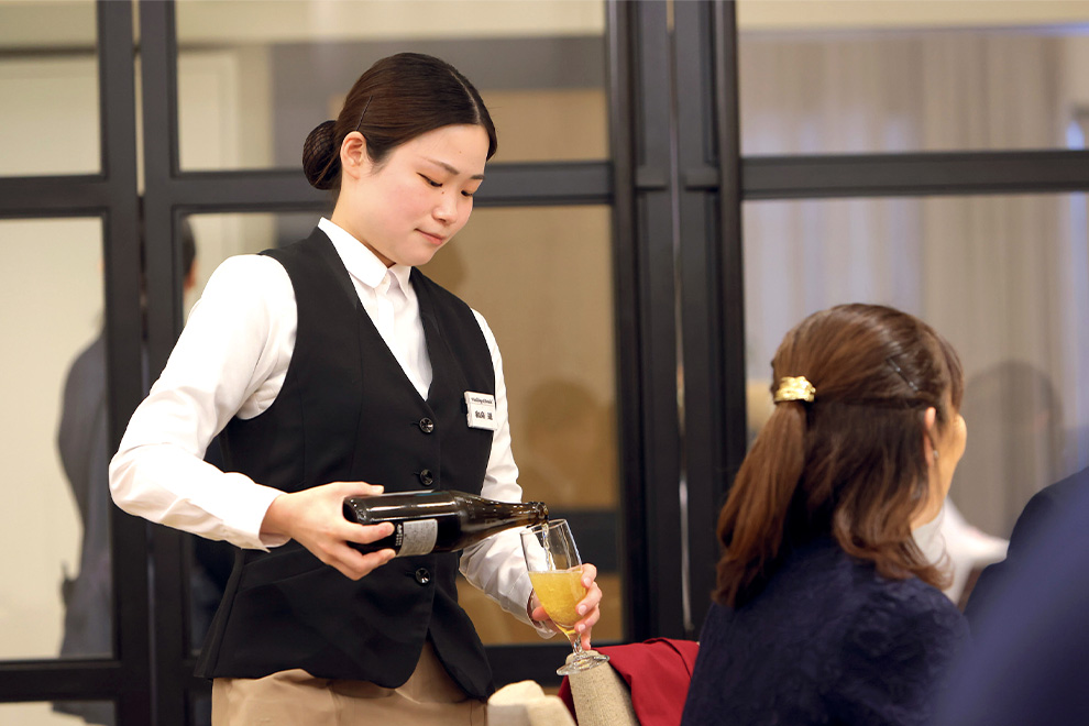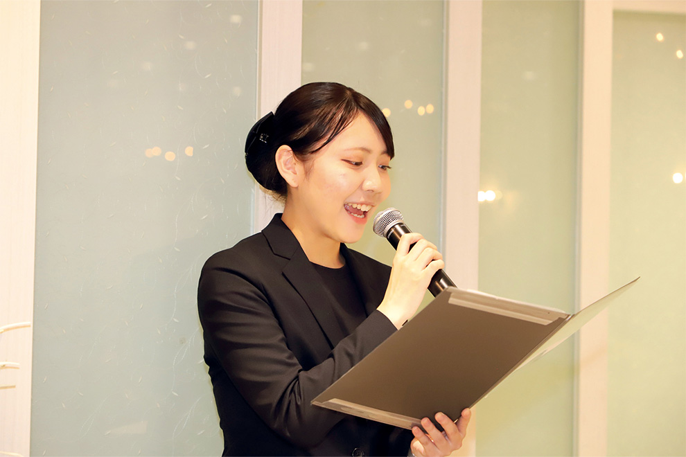 2年間の集大成!リビエラ東京を舞台に、星空をテーマにしたウェディングを提案。大切にしたの は言葉遣い、礼儀、姿勢、笑顔といった基本と、チームワークや情報共有。お客様の目線に立った行動を心掛けました。