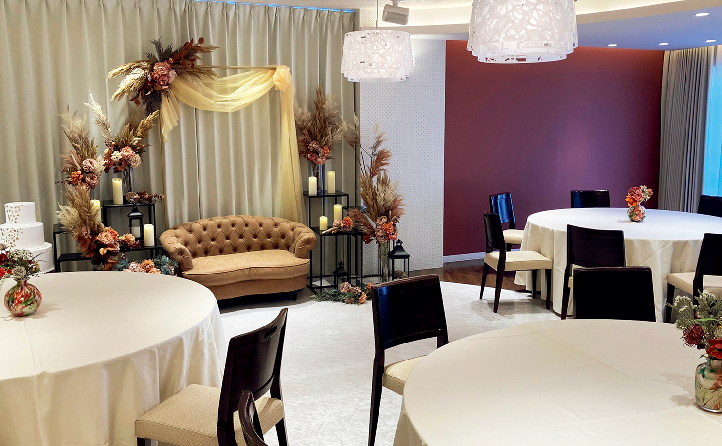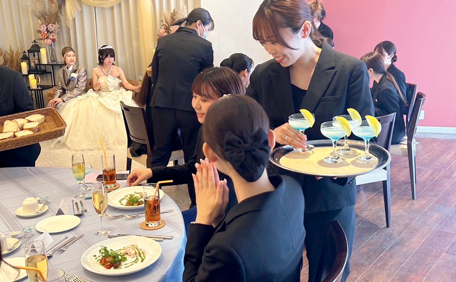 料飲サービスや披露宴演出を学べるパーティールームです。会場の装飾やテーブルコーディネートなど、実際の披露宴を想定した実習が受けられます。
