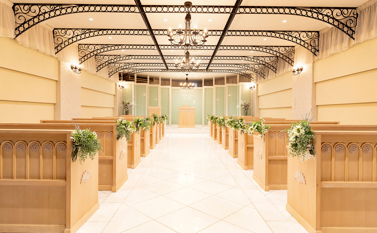 結婚式場さながらの施設で、実践的な授業が日常的に受けられます。模擬挙式や模擬披露宴では、照明や音響、装飾などを自由にアレンジが可能です!