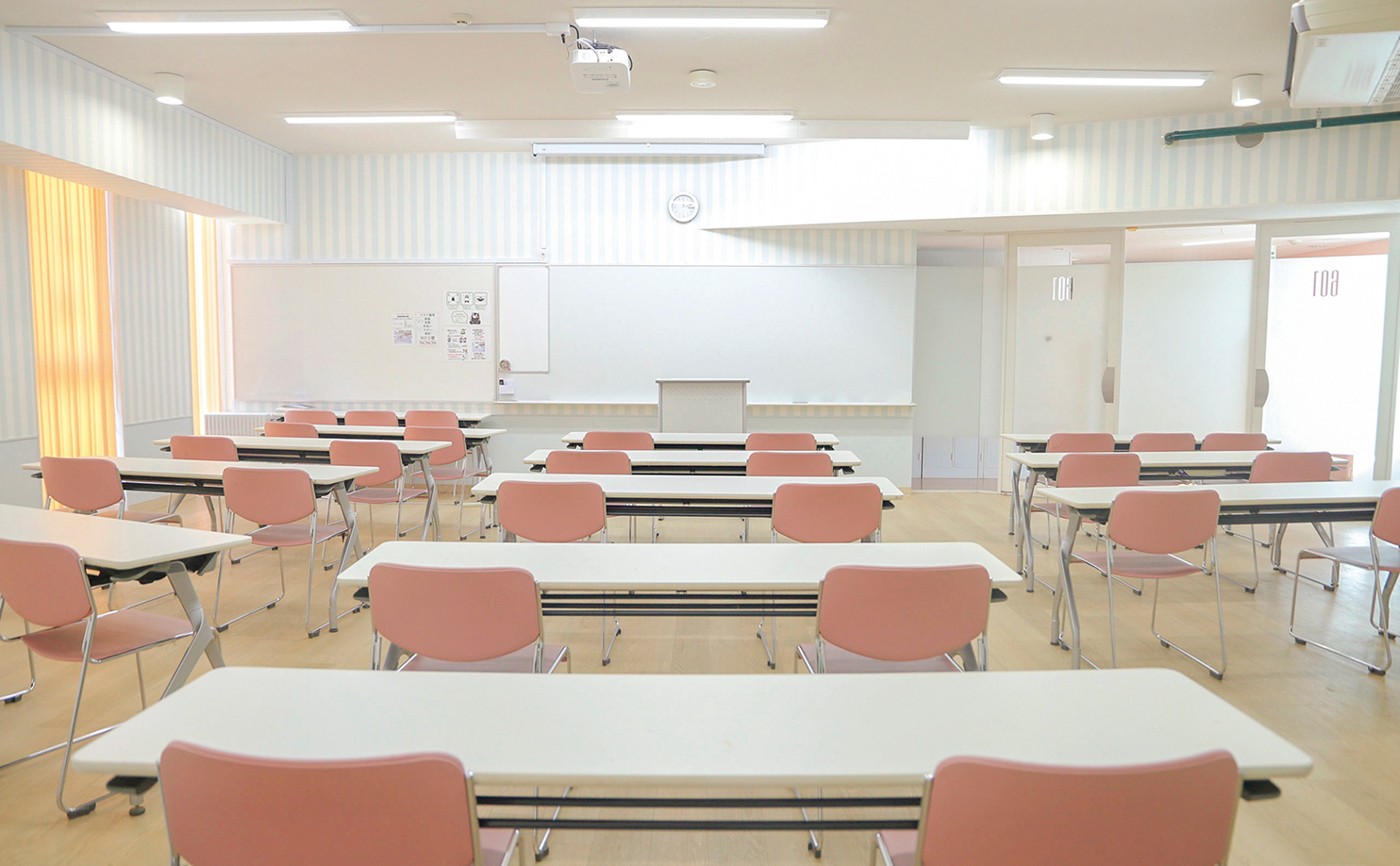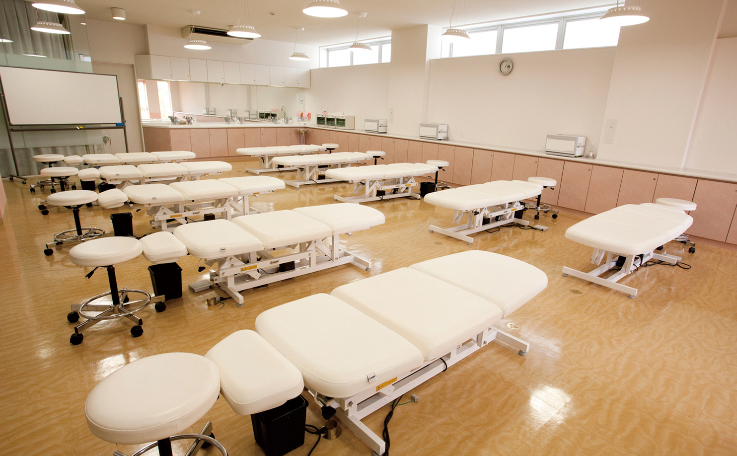 講義や昼休みに使用する一般教室と、プロ仕様の機器が使えるエステサロンのような空間。