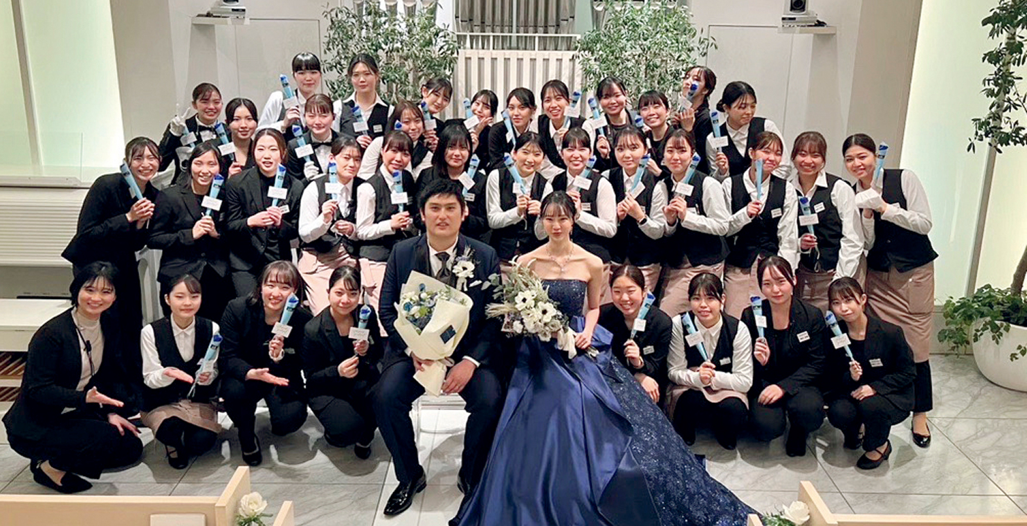 検定としてはブライダル業界で一番認知度のある国家検定『ブライダルコーディネート技能検定』を始め基礎知識の検定からマナーについての検定、美容技術の検定まで最大19個の資格が取得可能となっています。これら2年間の教育カリキュラムとクラス担任制で指導するオリジナルシステムで生徒一人ひとりに手厚い指導を行うことで2024年は100%という就職率を残しています。ブライダル業界の仕事で得られる感動とやりがいは幅広い知識とお客様からの信頼の上に成り立ちます。そのために、在学中の2年間で高い専門性と、同じ目標を共に目指すクラスメイトと切磋琢磨することで人間力を身に付ける必要があります。ブライダル業界を志す方々にとって、日々成長する場の提供が私達の仕事だと考えております。