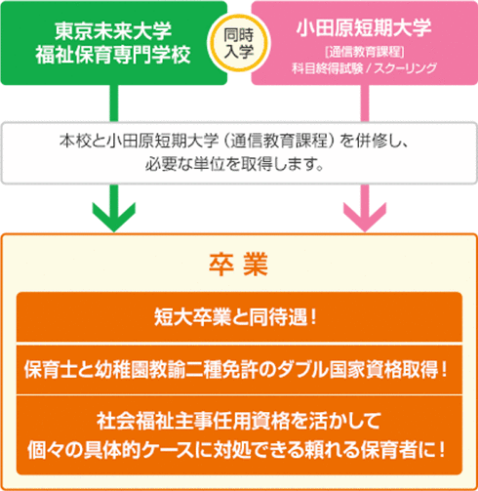 小田原短期大学との教育連携制度があるため、本校で取得した単位を活かして