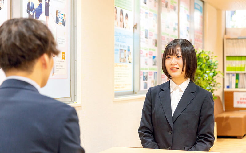 学生一人ひとりの個性や実力をしっかりと把握しているクラス担任と、就職したいエリアの情報に詳しいエリア担当教員の2人で、就職活動をガッチリとサポート。よりリアルで的確なアドバイスを行います。