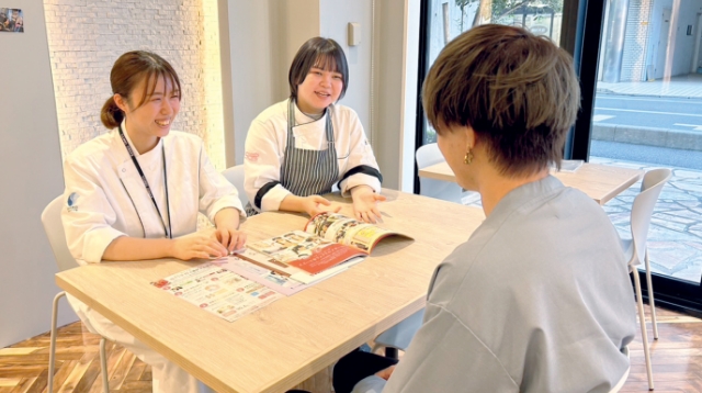 短大では保育を学んでいましたが、実習に行った先でアレルギー体質の子どもたちと会い、みんなが安心して食べられるアレルギー対応のケーキを作りたいと思うようになりました。入学当初は学校やクラスの雰囲気が心配でしたが、クラスメイトの中には再進学者もたくさんいたことから、年齢に関係なく同じ夢を持った仲間として話しやすく、再進学して良かったと感じました。